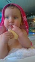 jag visste att hon gillade och bada men vi ha ju alltid bara vart i djupt bassäng, här kunde hon krypa runt som hon ville i det grunda och om hon kröp eller;) helt tokig-kröp ba rätt ut på det djupa och svalde massa vatten men hon fräste bara lite och skrattade så var det inget mer med det:)